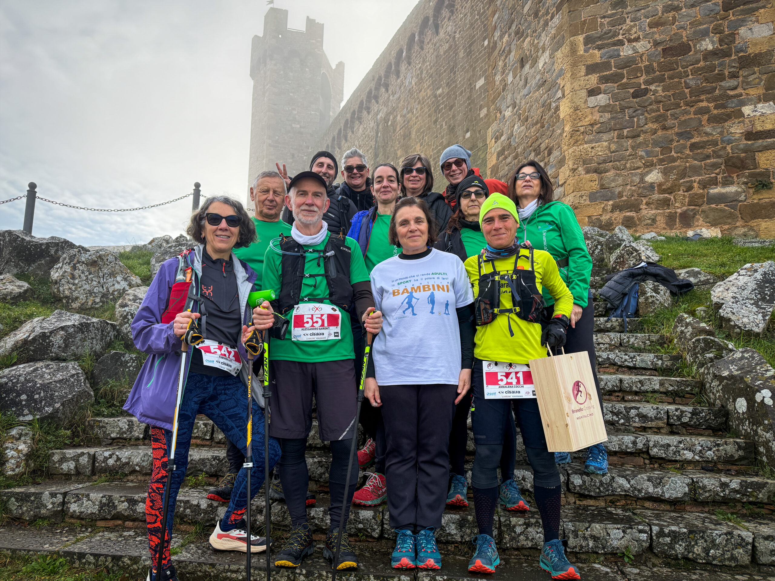 Inoltre, un nutrito gruppo di Nordicchieri aveva messo in calendario la partecipazione alla Brunello Crossing: qualcuno iscrivendosi alla 14km e altri alla 25km. La manifestazione di Trail Running che ormai da oltre 10 anni ha come teatro Montalcino e dintorni ha sempre accolto a braccia aperte la partecipazione a passo di Nordic Walking (libero) anche sui percorsi competitivi. Per potersi godere al meglio la giornata sui sentieri fangosi ci sono voluti mesi di costante e intenso. Allenamento e Performance sono stati gli obiettivi che hanno perseverato Ilaria R., Fabiola, Uberto, Lara, Tiziana, Simona, Susanna, Giulia B., Alessandro G., Vittorio, Fabiana, Alessandro B., Vittorio, Ilaria D.T., Paola A., Patrizia B., Barbara P. e la Annina (che preparava come gara di passaggio verso la UMTB del Chianti, in programma a marzo, la 25km).